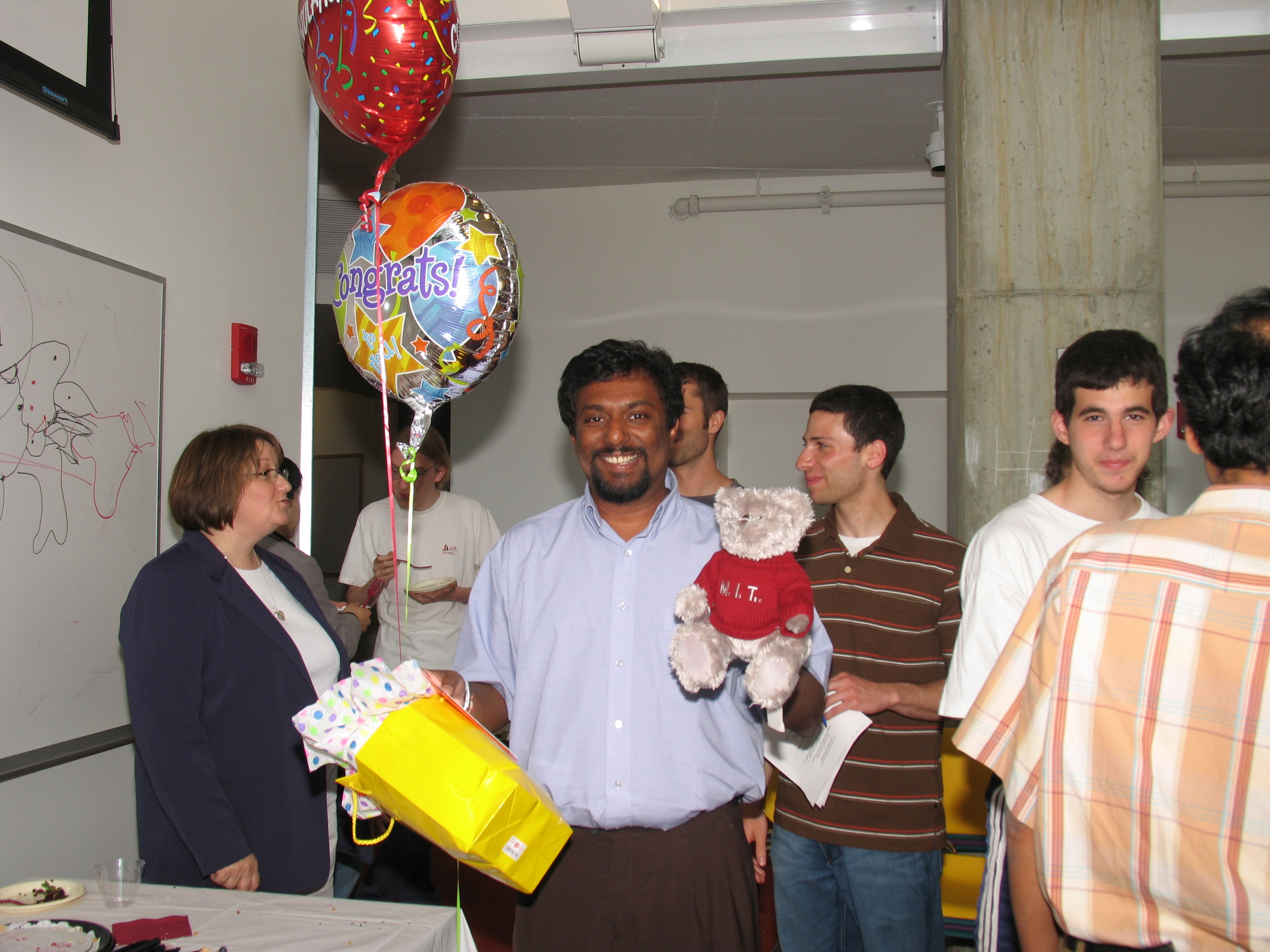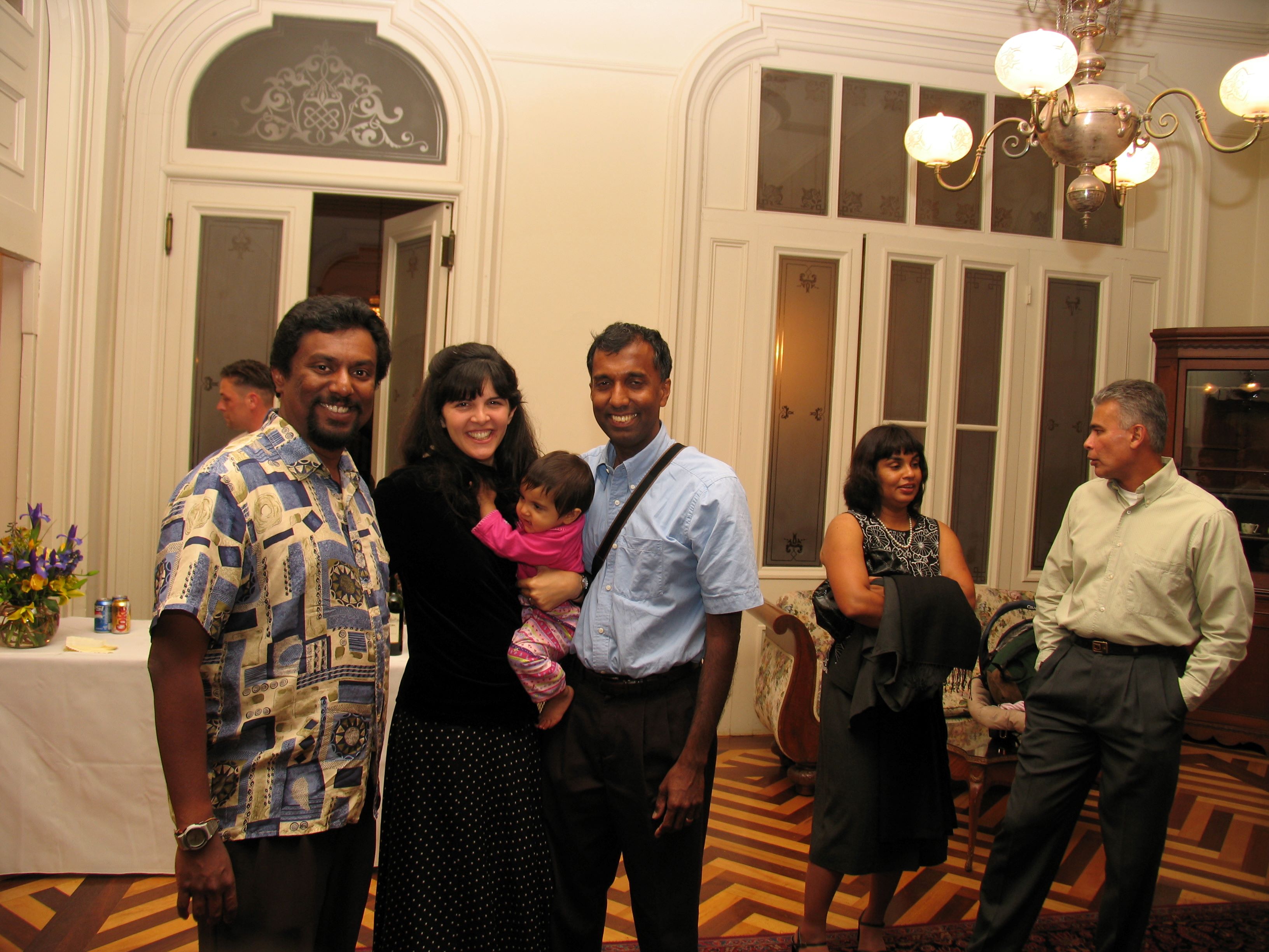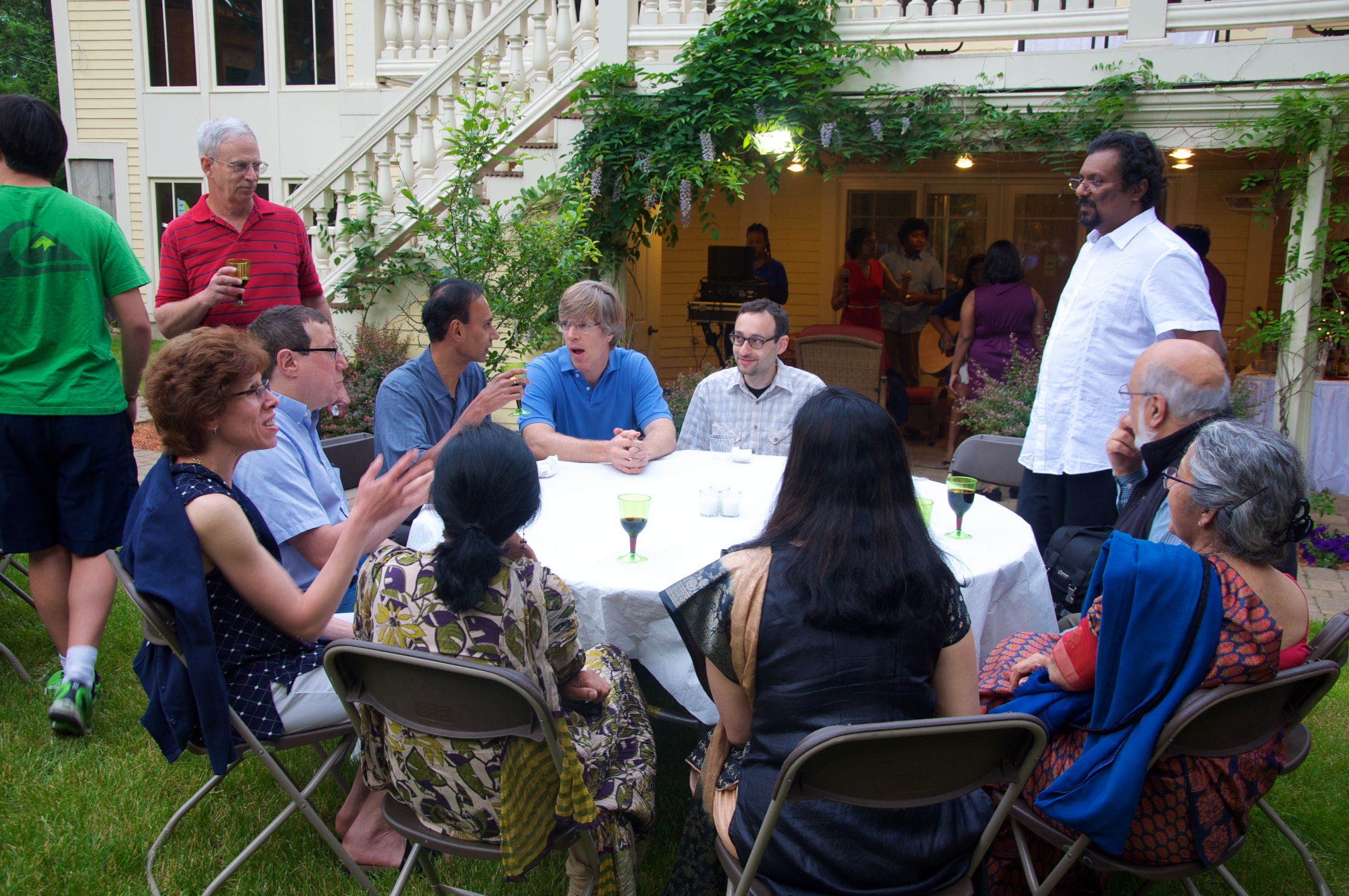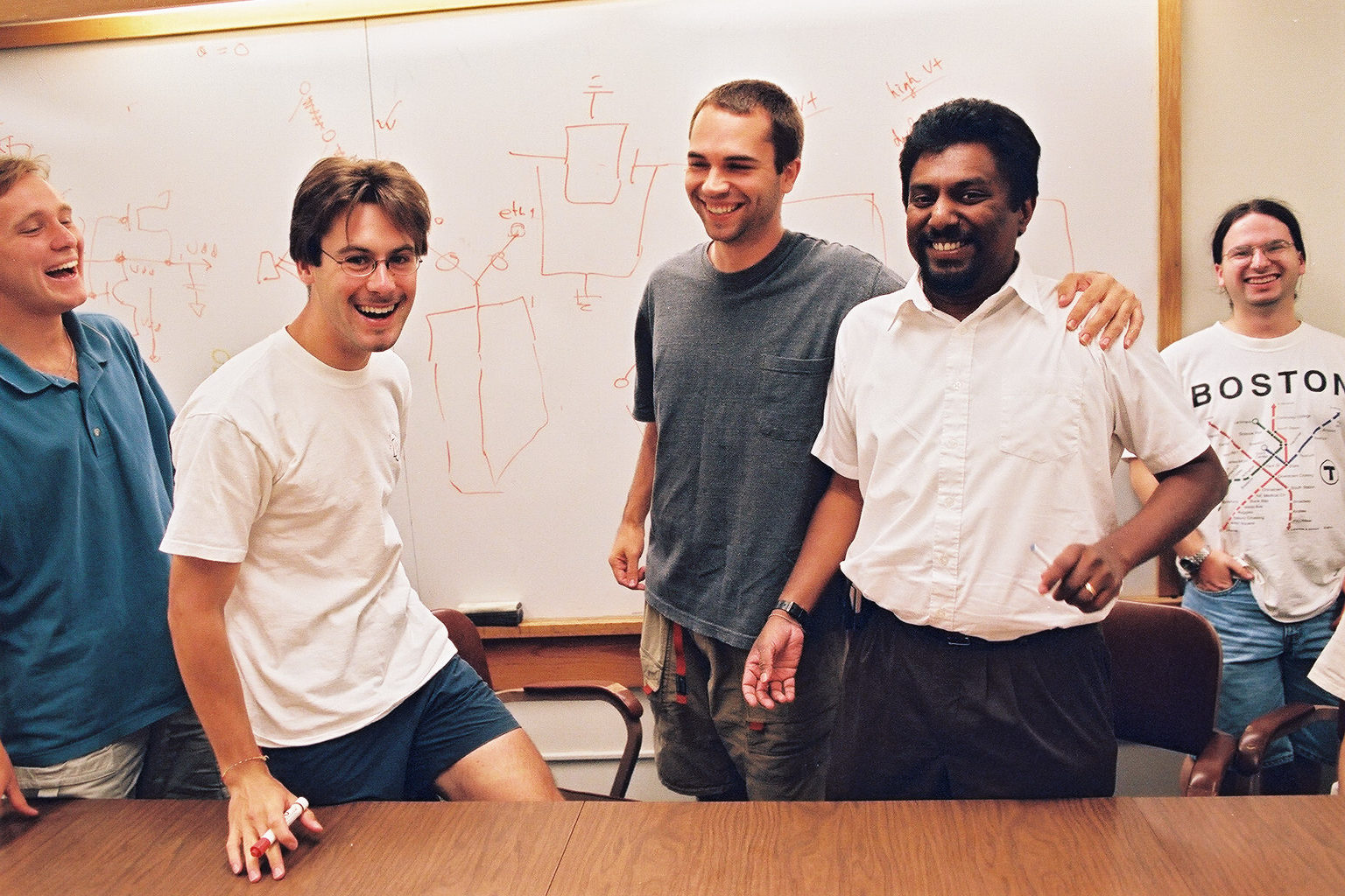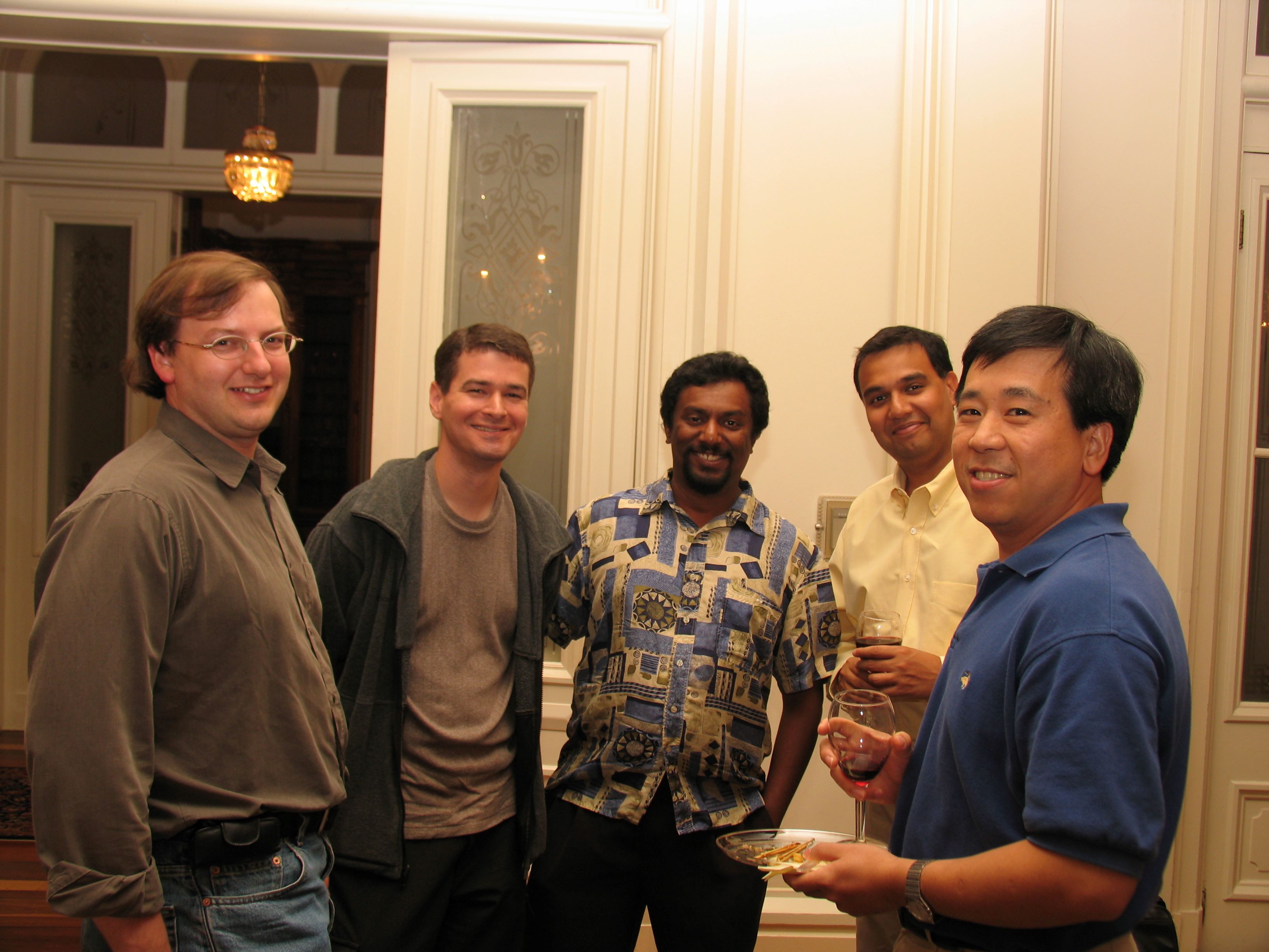 A gathering to celebrate the newly tenured professors took place at the Gray House last week. Far left is mechanical engineering associate professor Gang Chen, Saman Amarasinghe,associate professor of electrical engineering and computer science, President Charles M. Vest, Dave Perreault, assistant professor of electrical engineering and computer science, and Arindam Dutta, assistant professor of architecture.