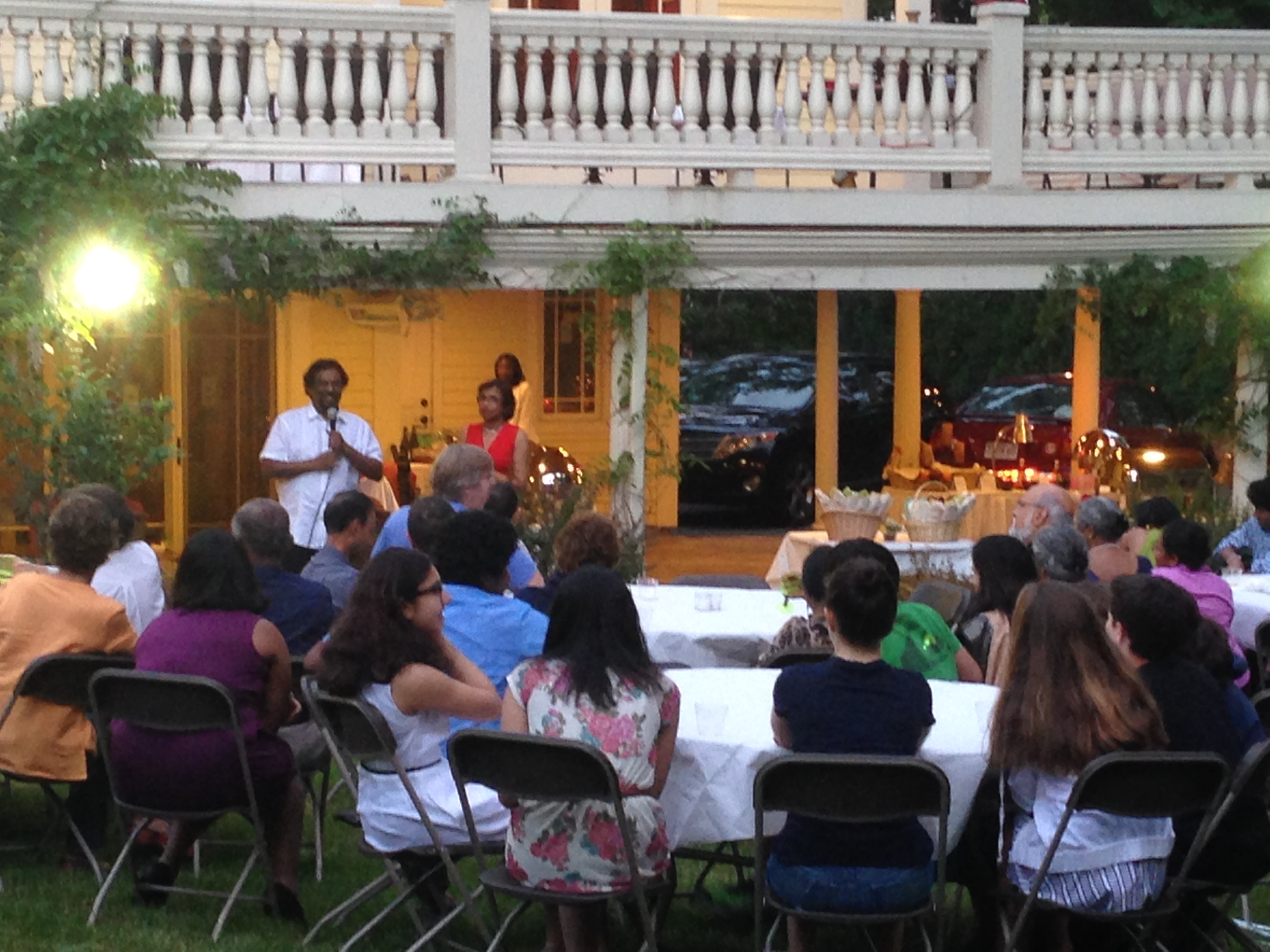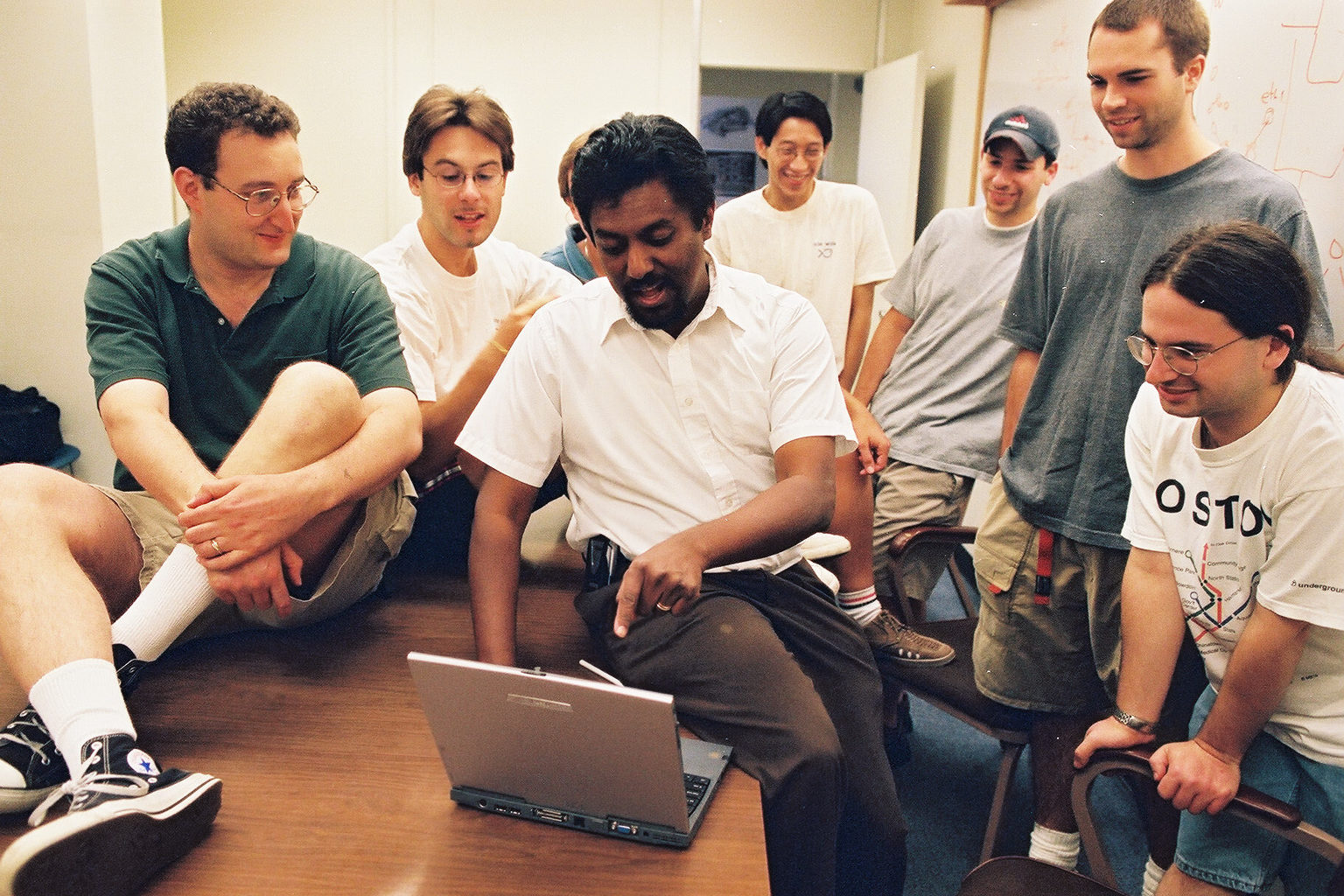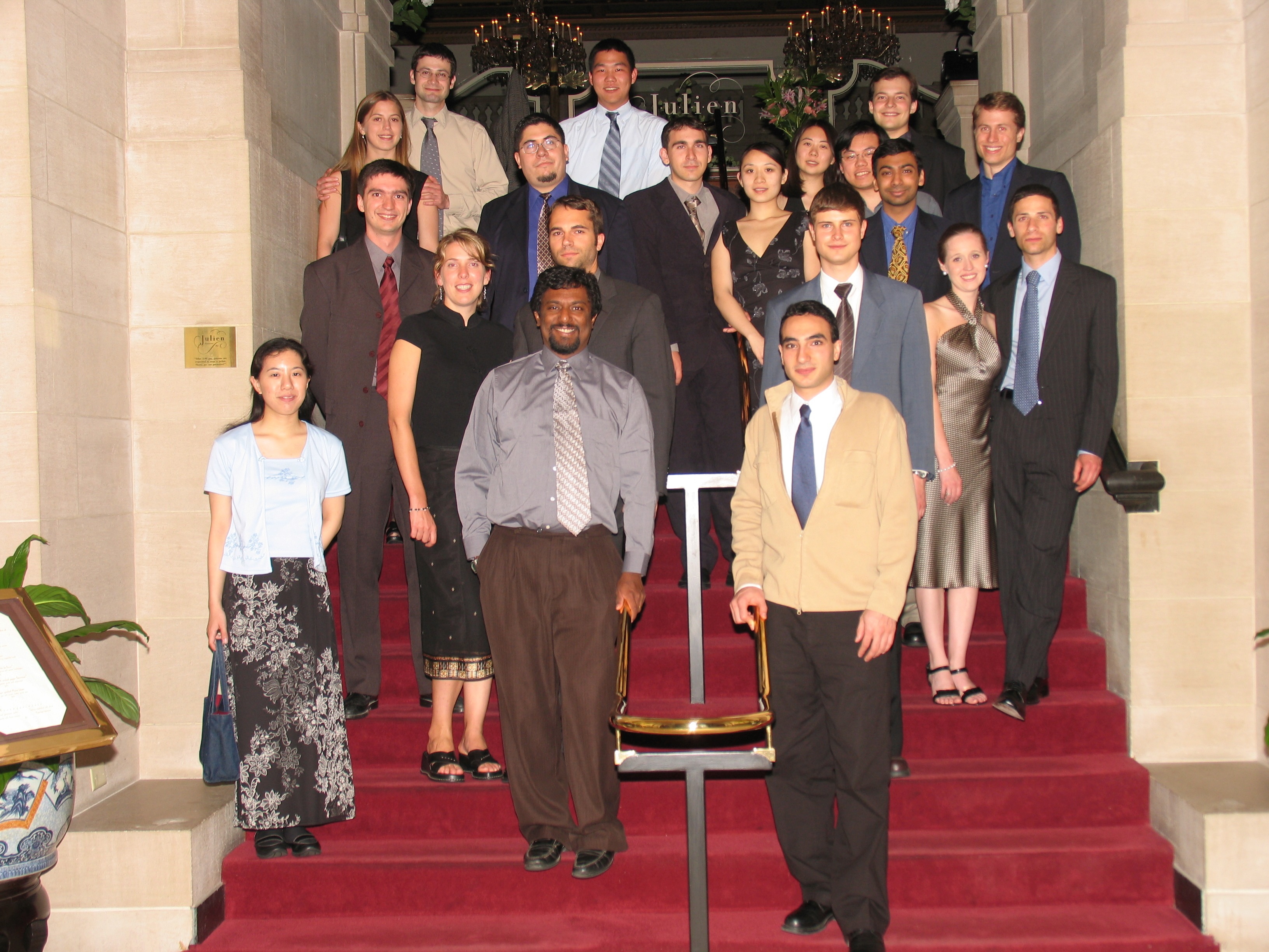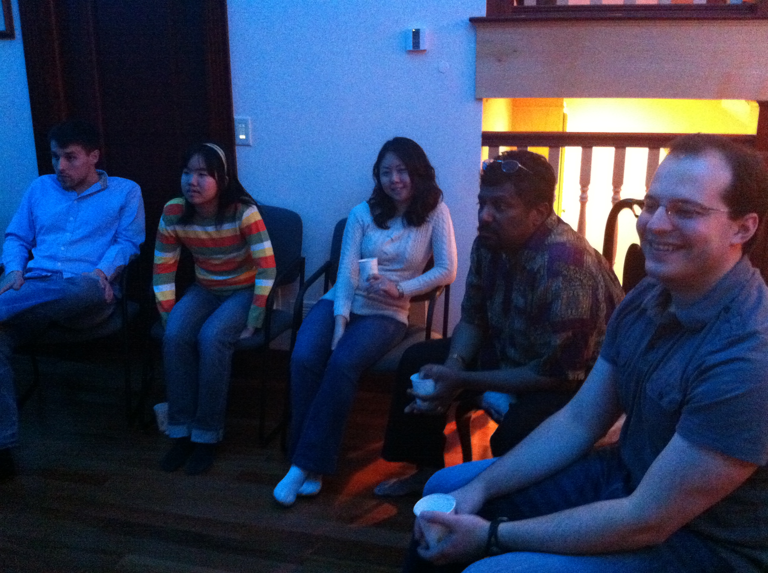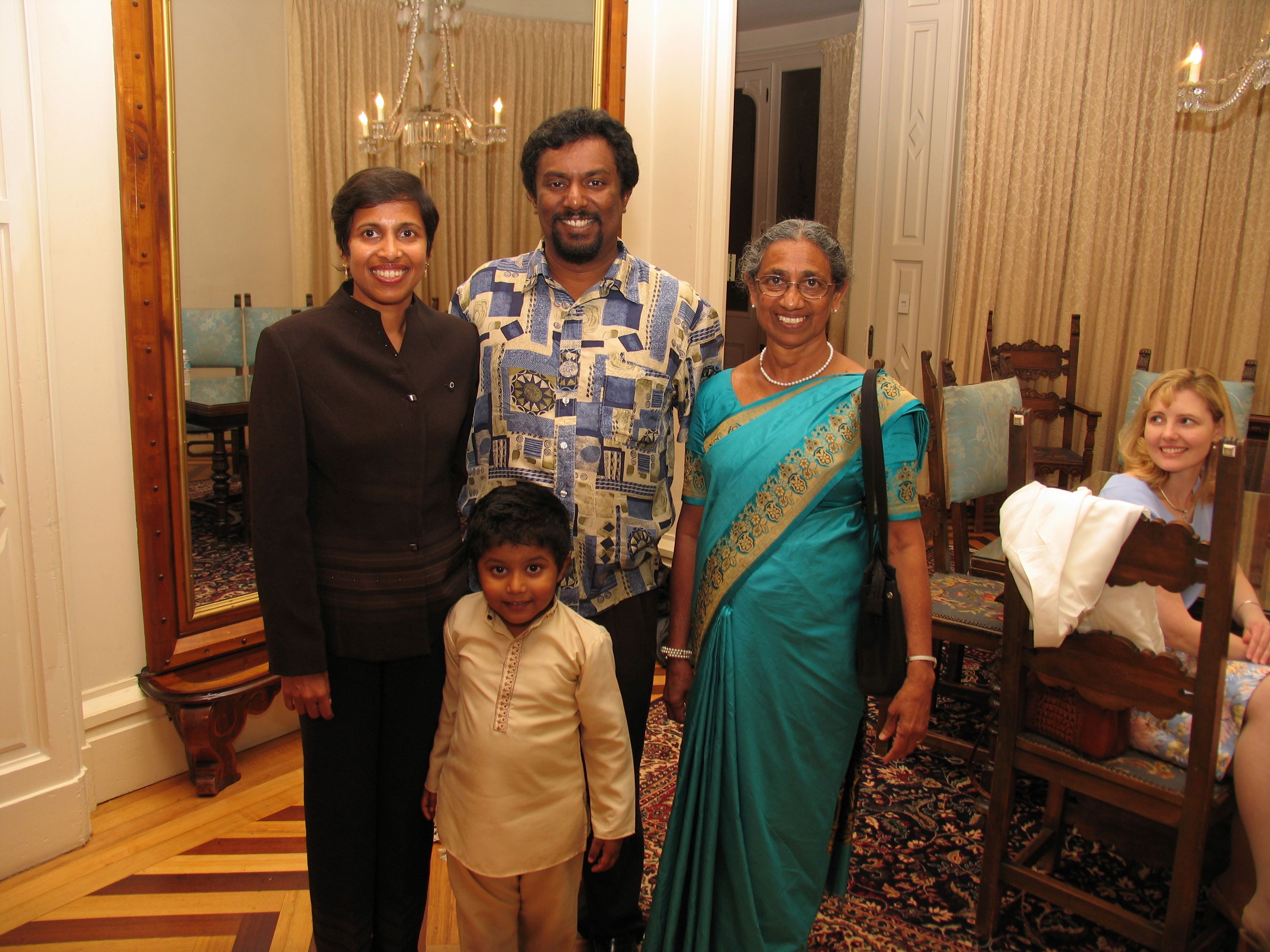 A gathering to celebrate the newly tenured professors took place at the Gray House last week. Far left is mechanical engineering associate professor Gang Chen, Saman Amarasinghe,associate professor of electrical engineering and computer science, President Charles M. Vest, Dave Perreault, assistant professor of electrical engineering and computer science, and Arindam Dutta, assistant professor of architecture.