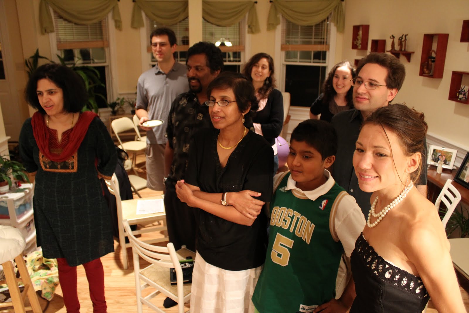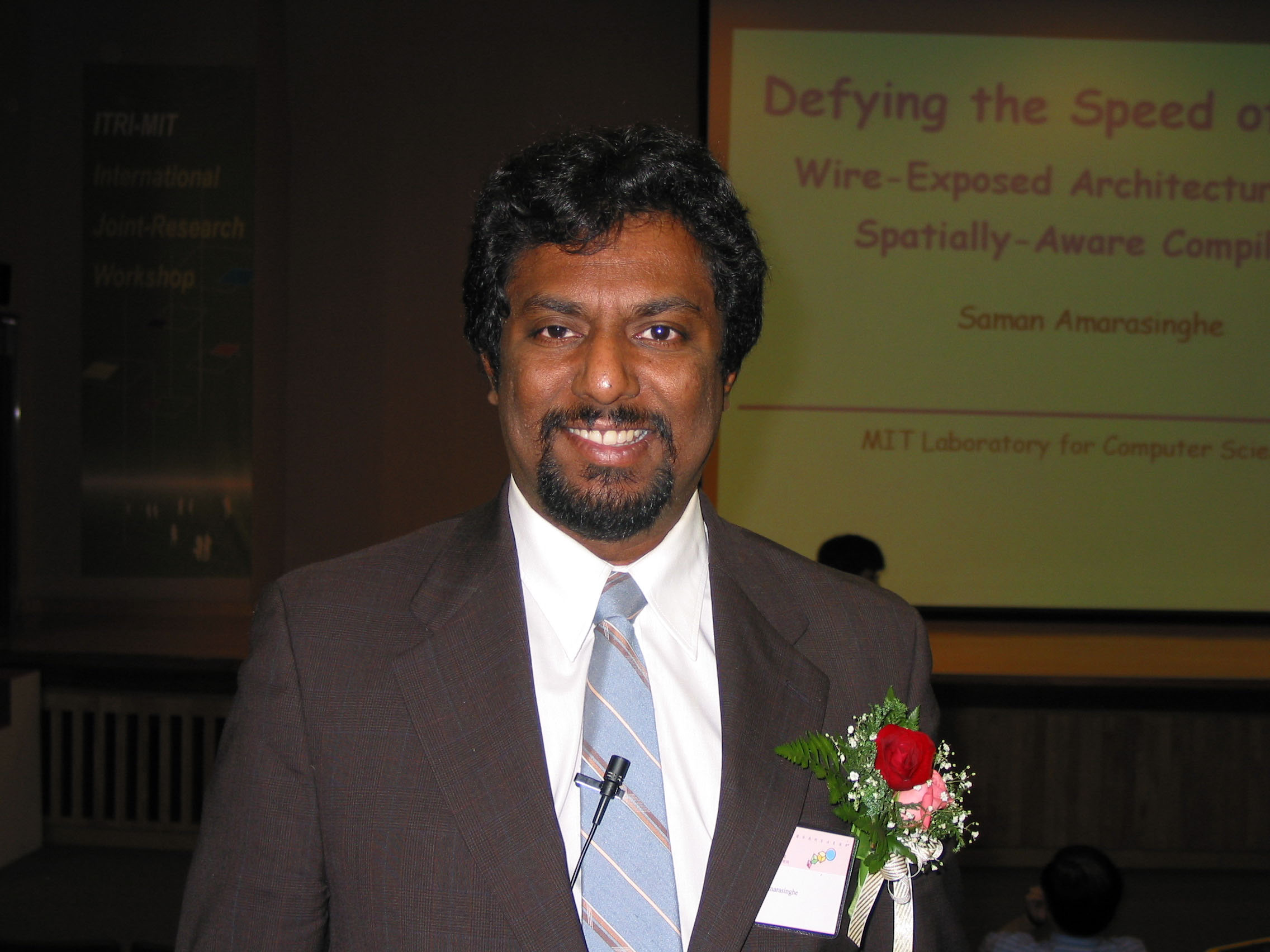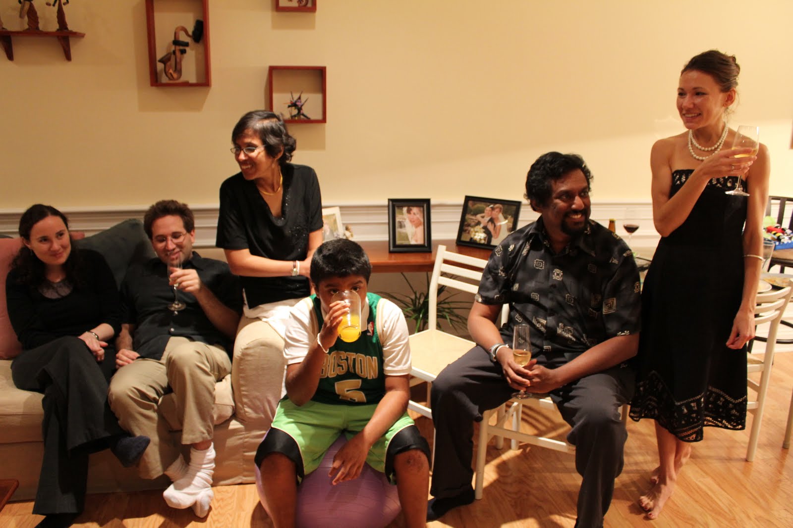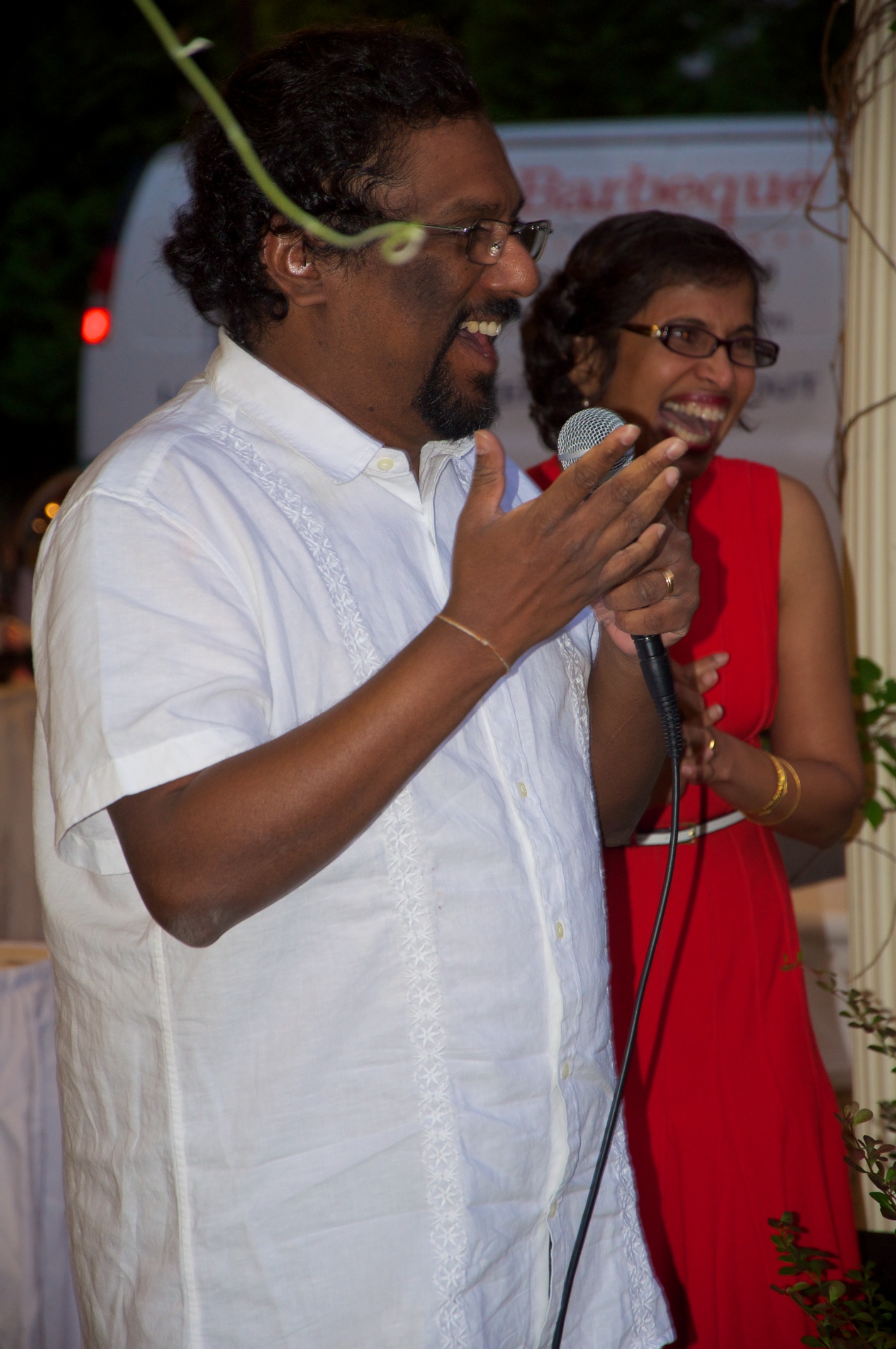 A gathering to celebrate the newly tenured professors took place at the Gray House last week. Far left is mechanical engineering associate professor Gang Chen, Saman Amarasinghe,associate professor of electrical engineering and computer science, President Charles M. Vest, Dave Perreault, assistant professor of electrical engineering and computer science, and Arindam Dutta, assistant professor of architecture.