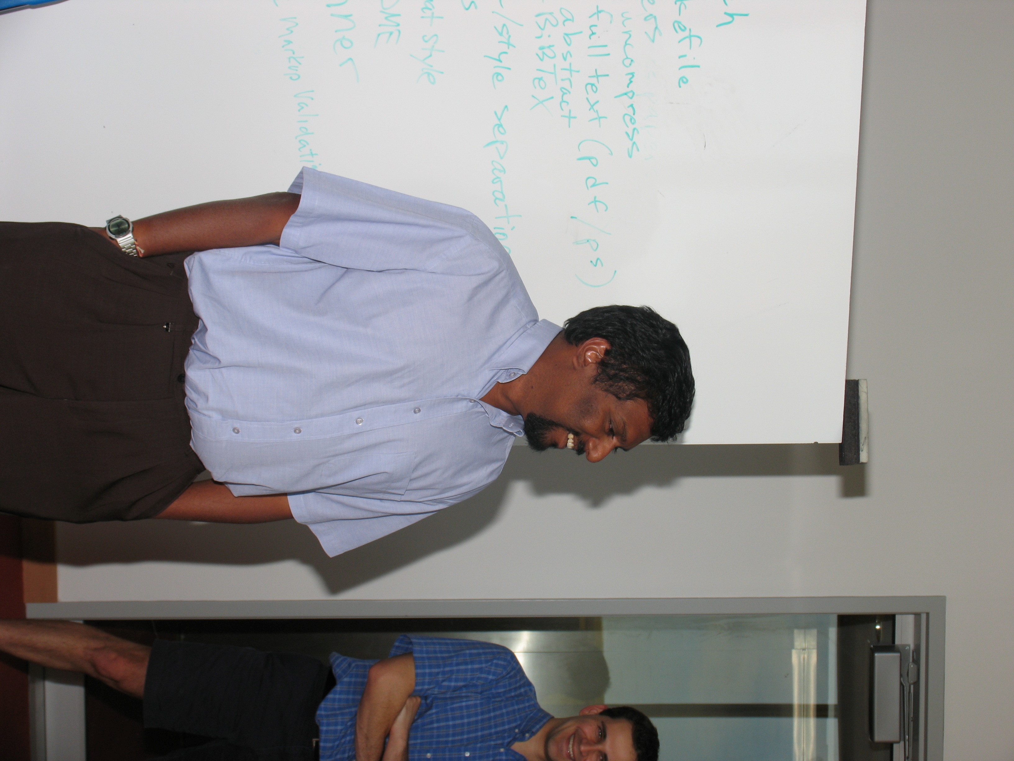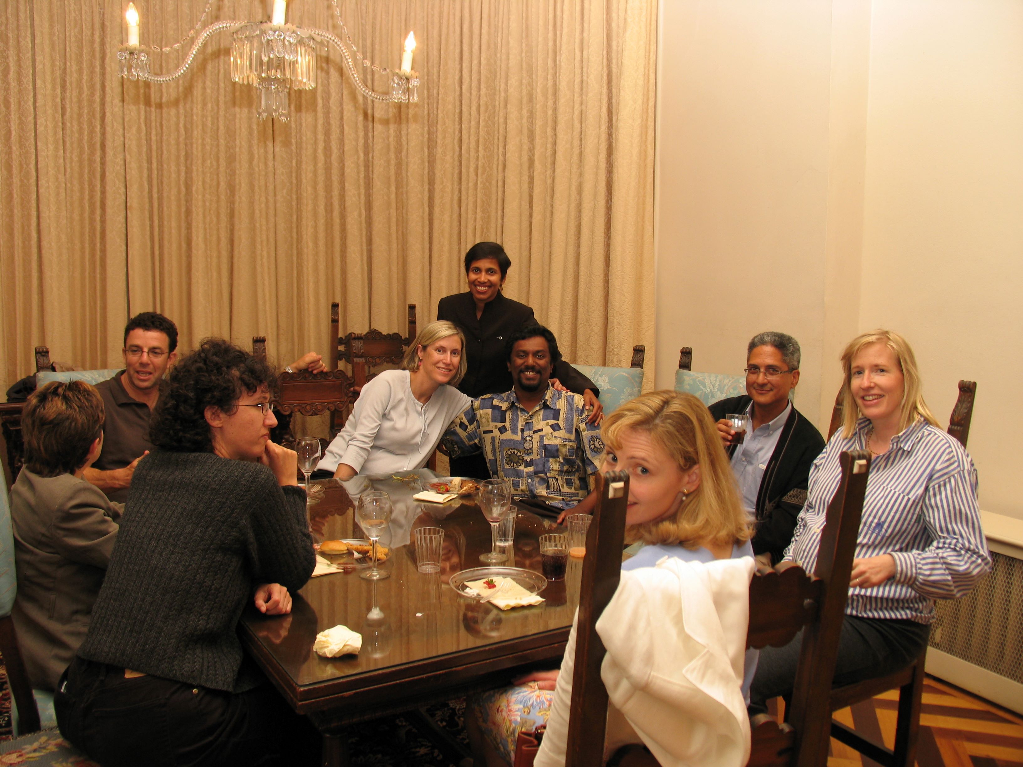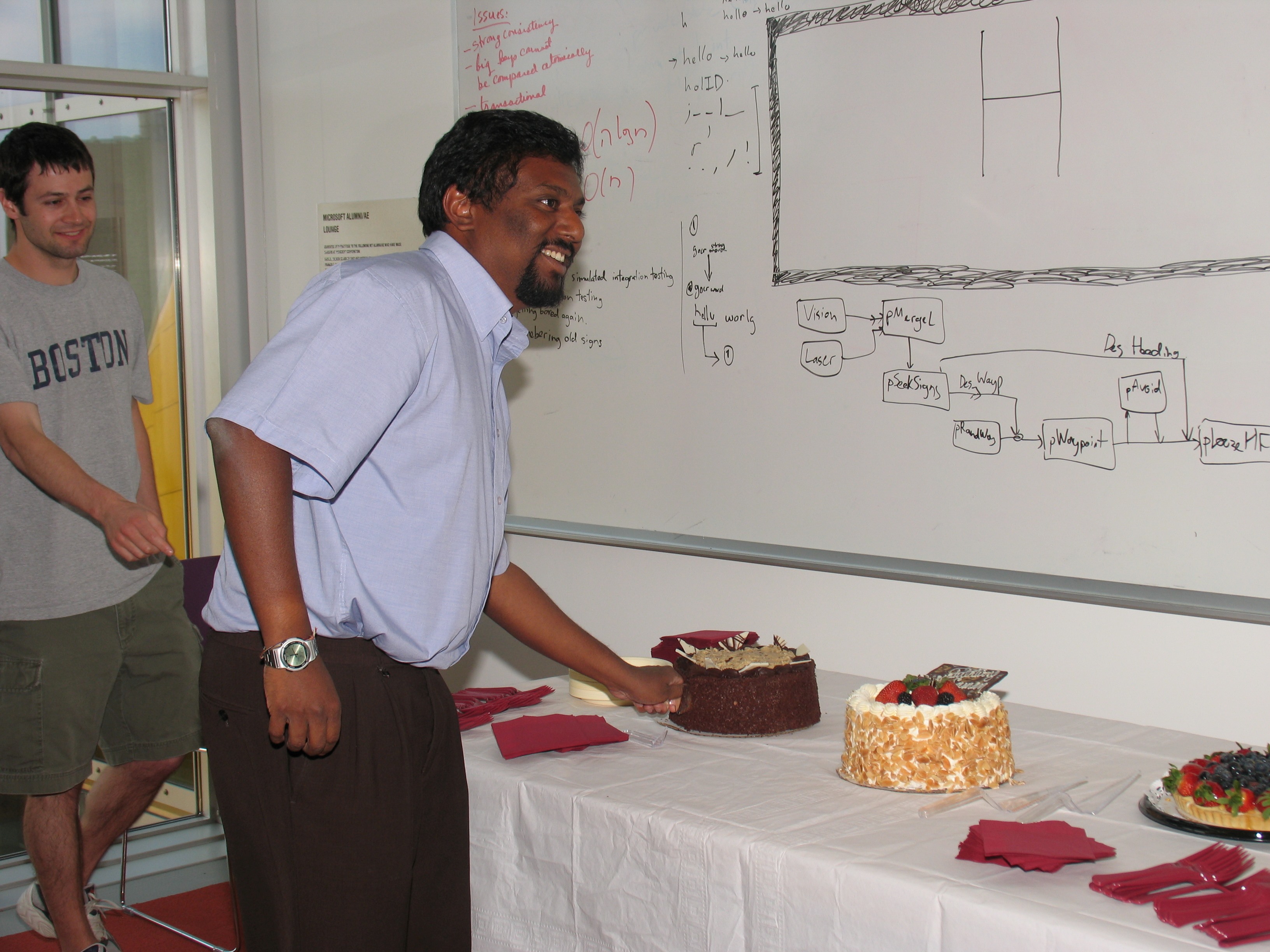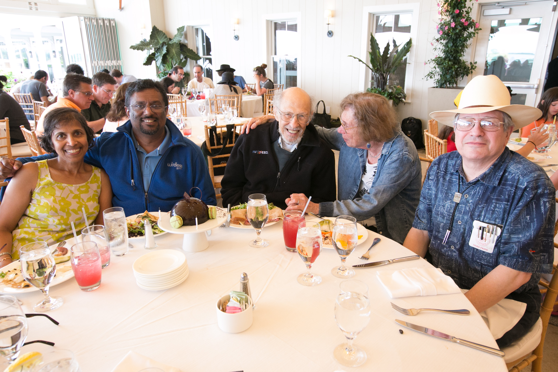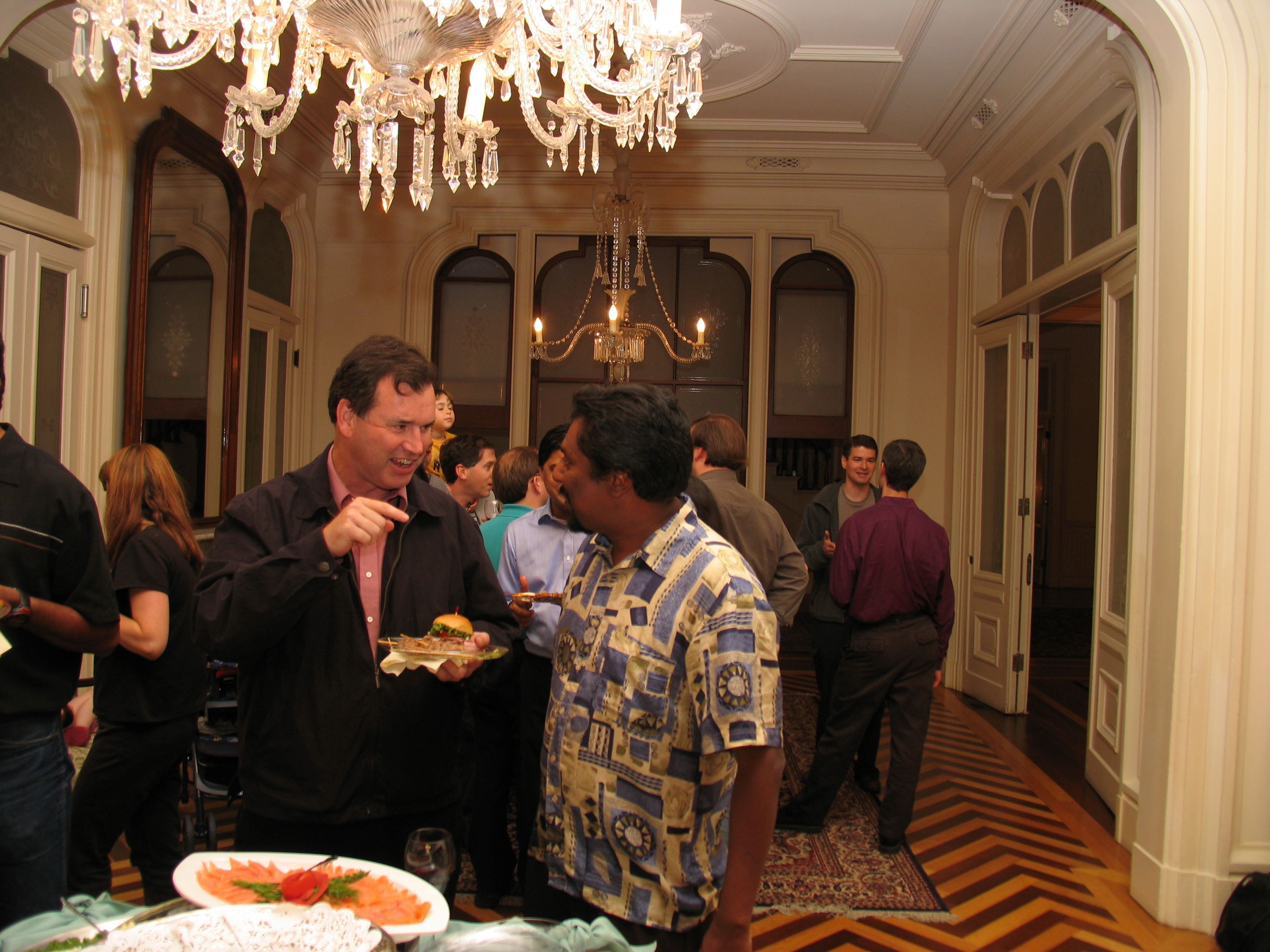 A gathering to celebrate the newly tenured professors took place at the Gray House last week. Far left is mechanical engineering associate professor Gang Chen, Saman Amarasinghe,associate professor of electrical engineering and computer science, President Charles M. Vest, Dave Perreault, assistant professor of electrical engineering and computer science, and Arindam Dutta, assistant professor of architecture.