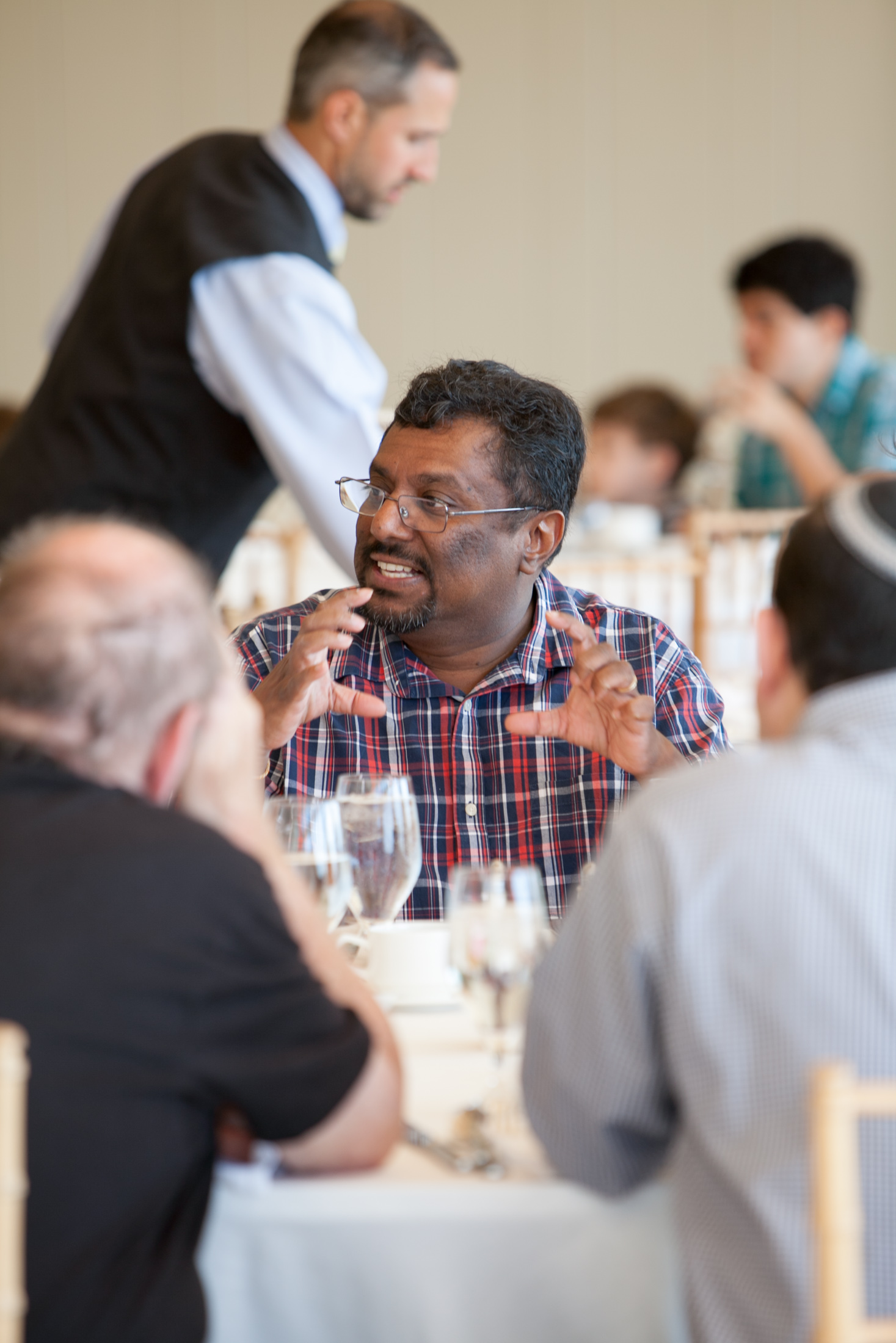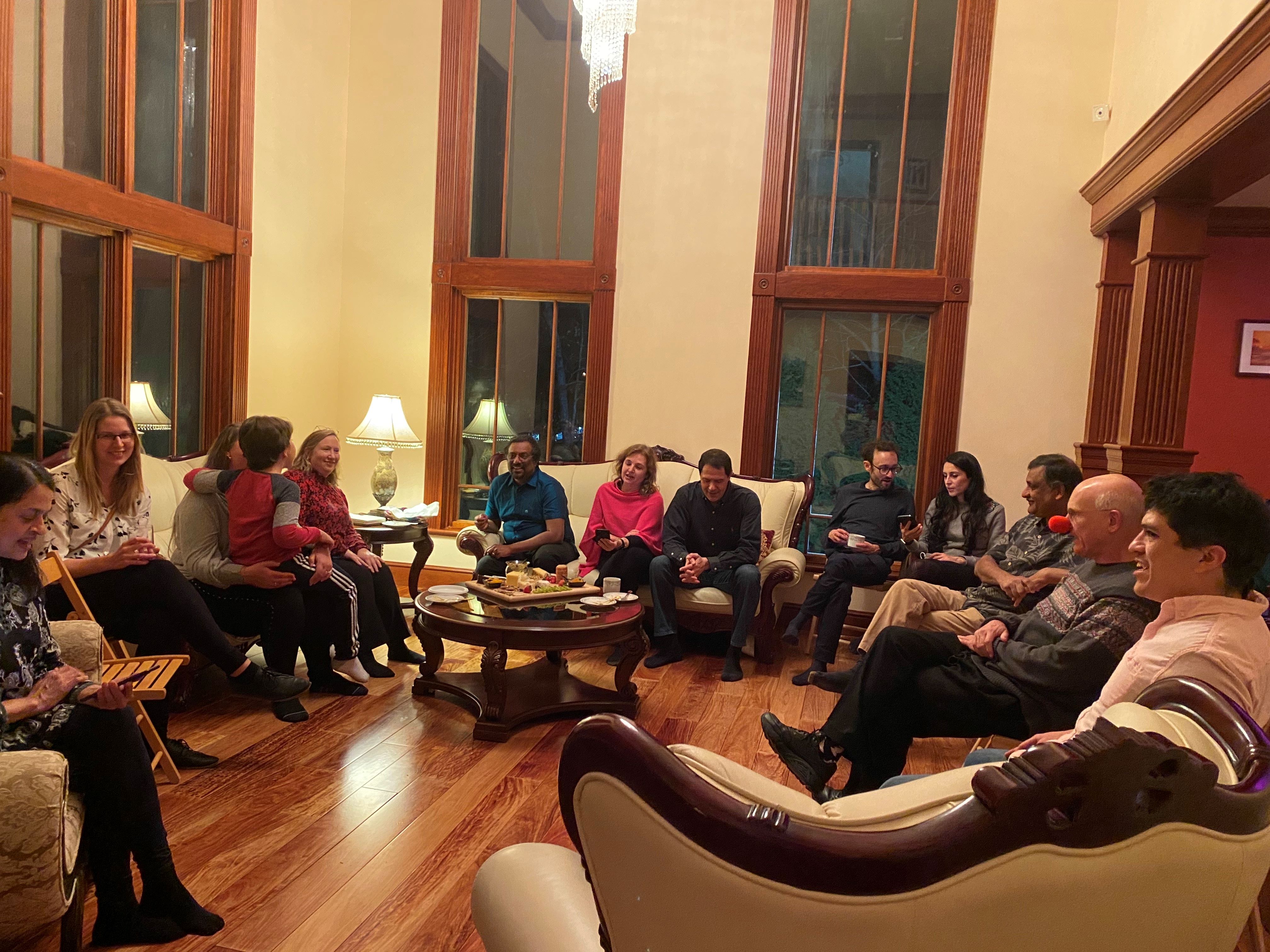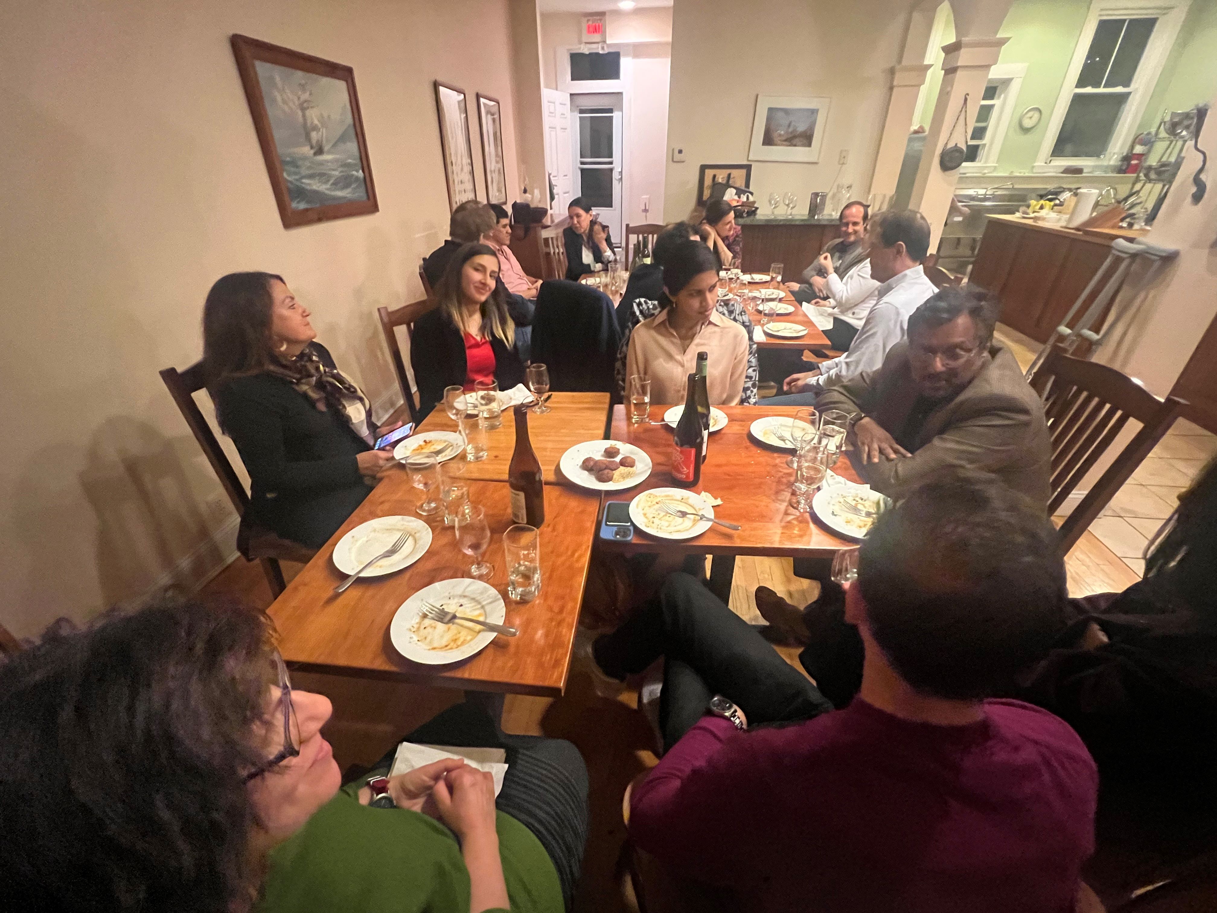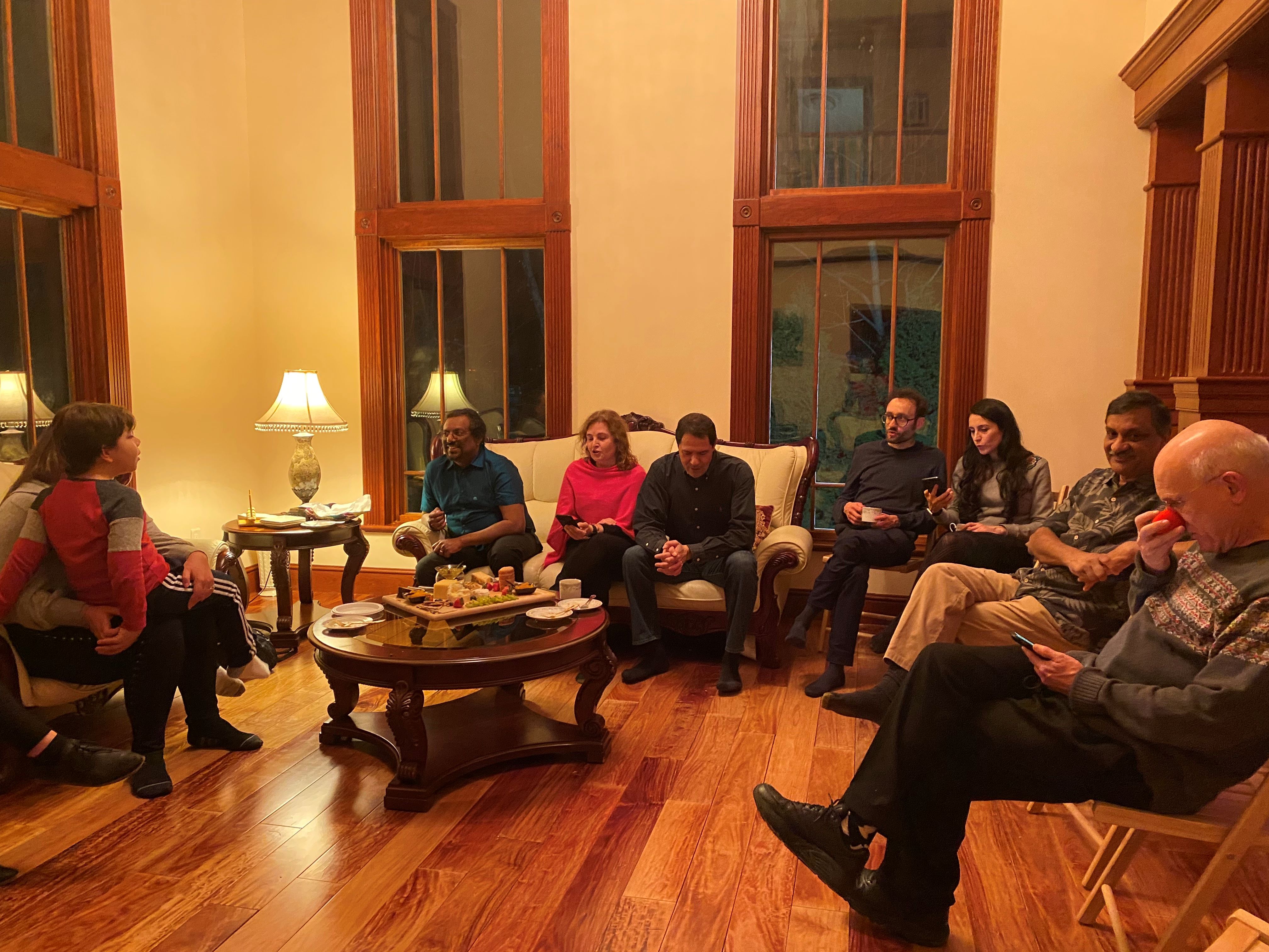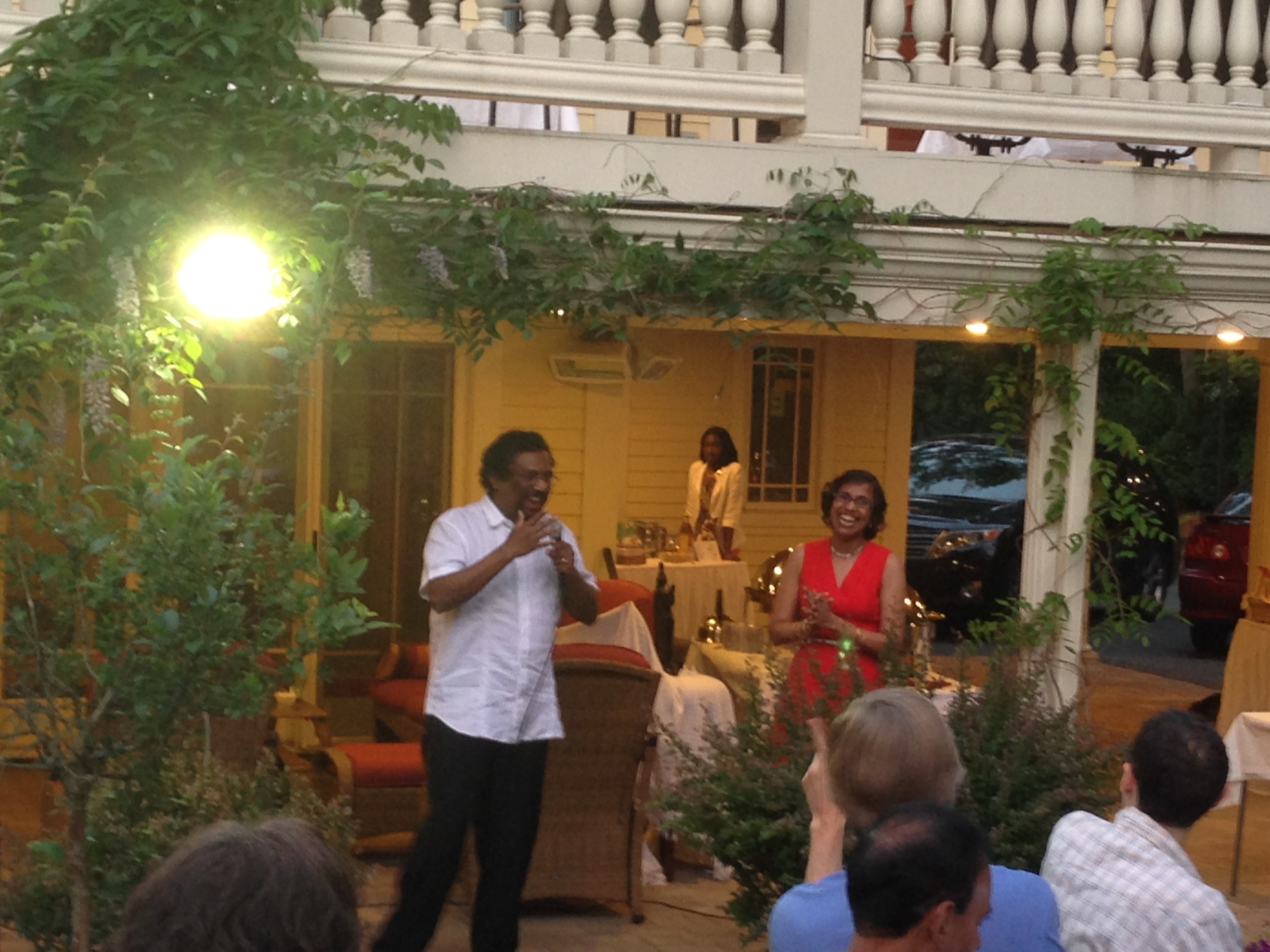 A gathering to celebrate the newly tenured professors took place at the Gray House last week. Far left is mechanical engineering associate professor Gang Chen, Saman Amarasinghe,associate professor of electrical engineering and computer science, President Charles M. Vest, Dave Perreault, assistant professor of electrical engineering and computer science, and Arindam Dutta, assistant professor of architecture.