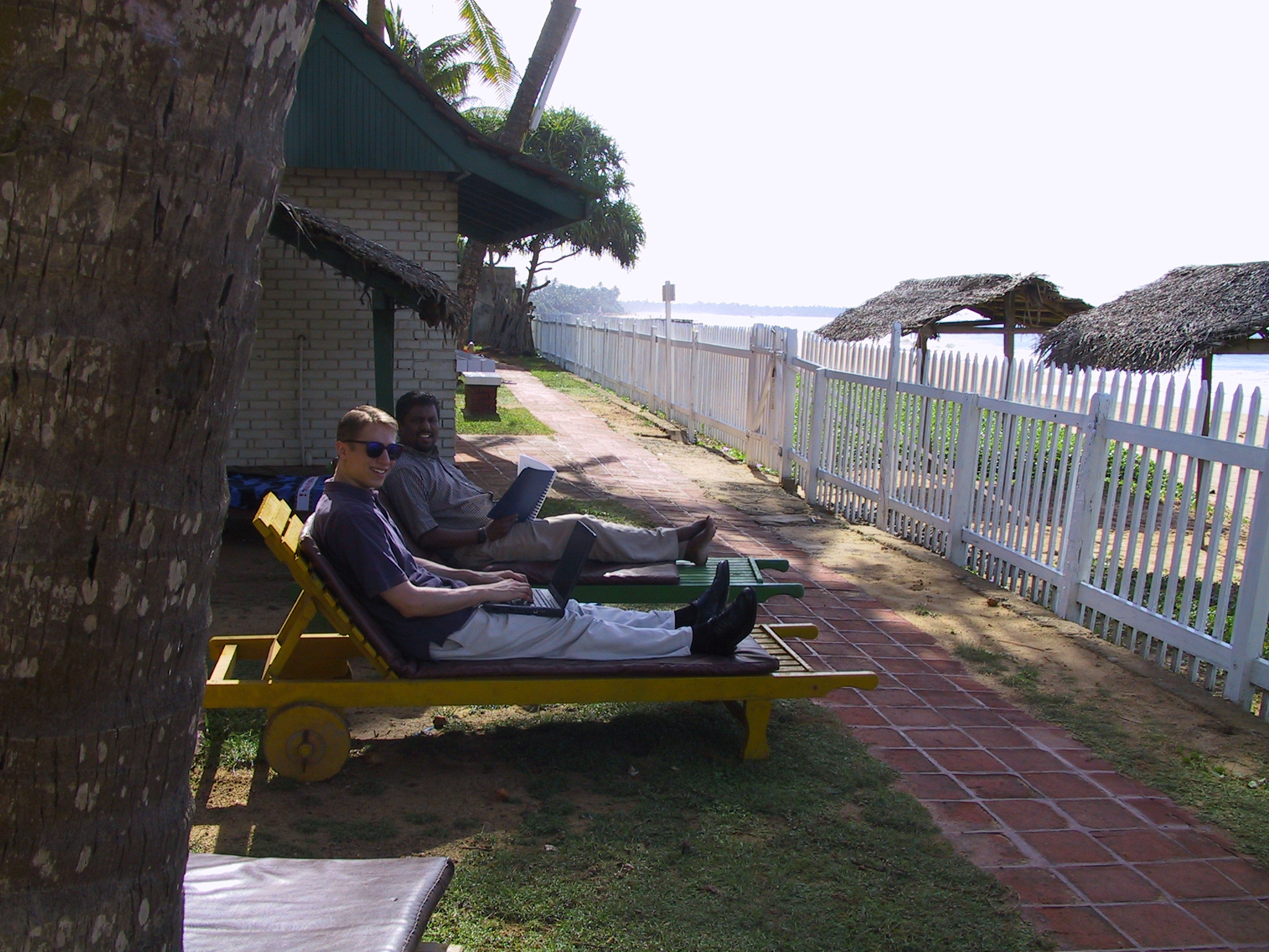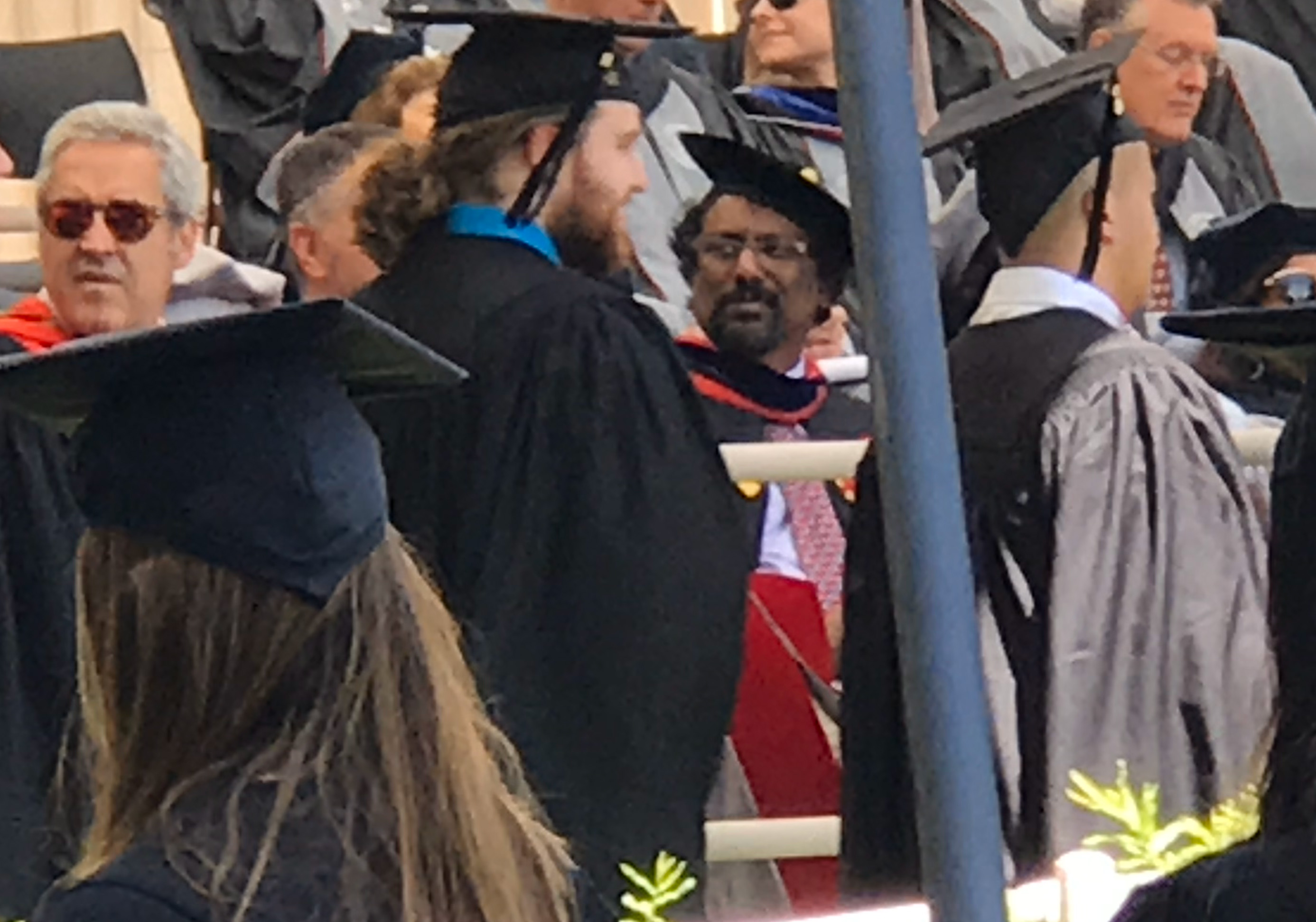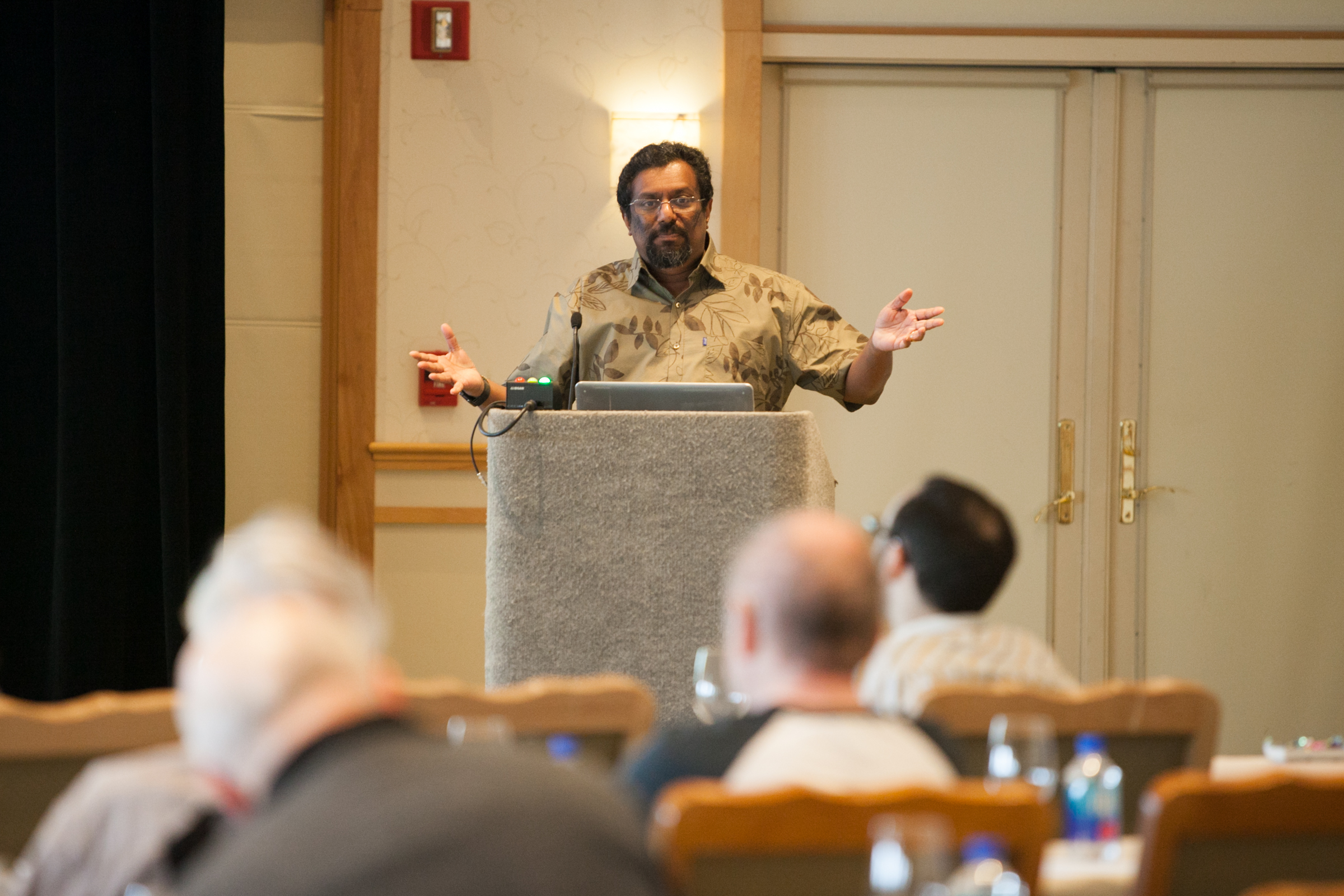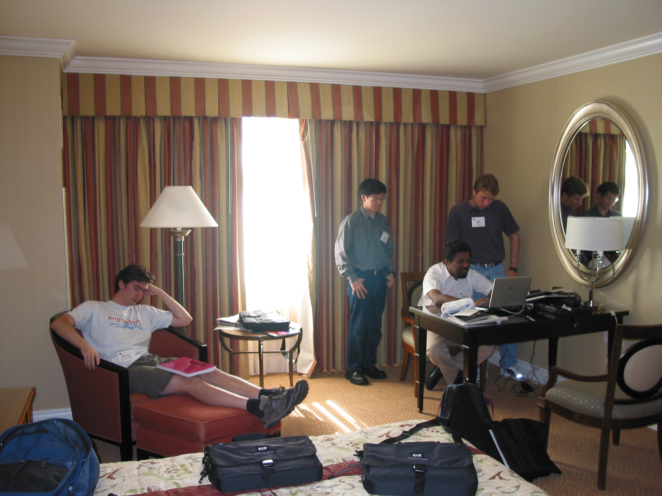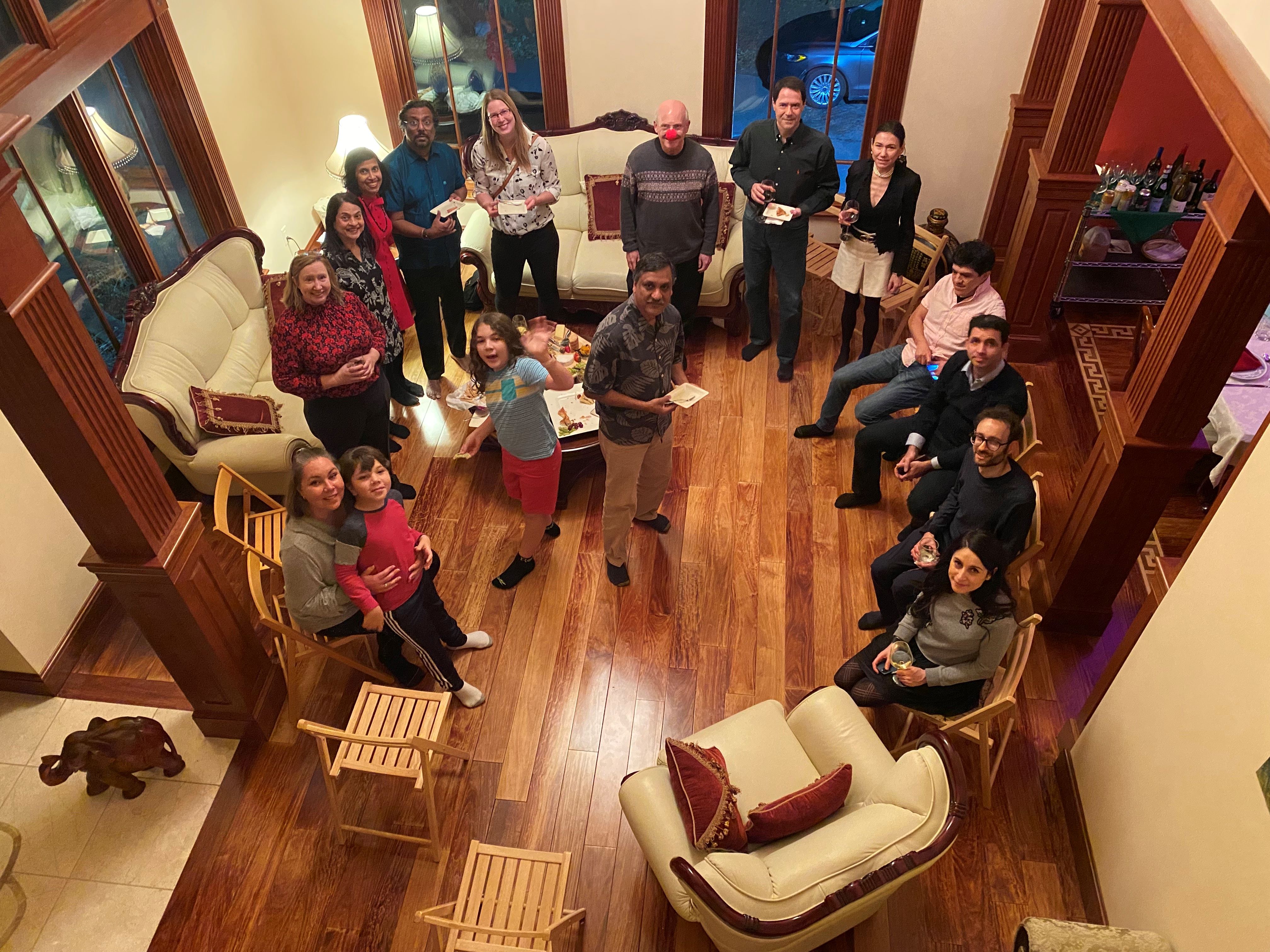 A gathering to celebrate the newly tenured professors took place at the Gray House last week. Far left is mechanical engineering associate professor Gang Chen, Saman Amarasinghe,associate professor of electrical engineering and computer science, President Charles M. Vest, Dave Perreault, assistant professor of electrical engineering and computer science, and Arindam Dutta, assistant professor of architecture.